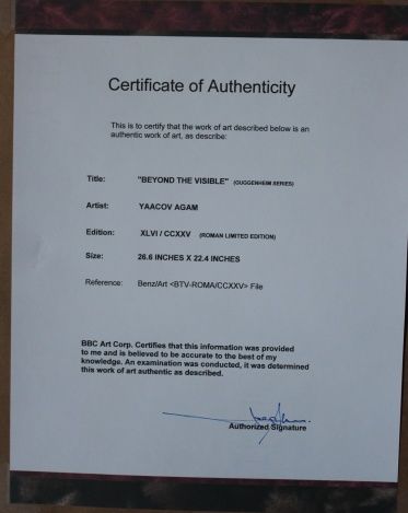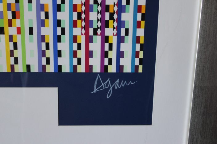 YAACOV AGAM HAND SIGNED "BEYOND VISIBLE" 1980- HAND SIGNED AND NUMBERED BY THE ARTIST - PROFESSIONALLY FRAMED - COMES WITH CERTIFICATE OF AUTHENTICITY - FRAME MEASURE APPX 45 INCHES X 35 INCHES