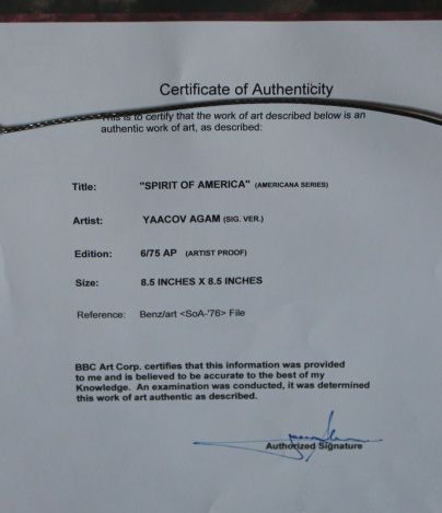 AGAM HAND SIGNED "SPIRIT OF AMERICA" 1976