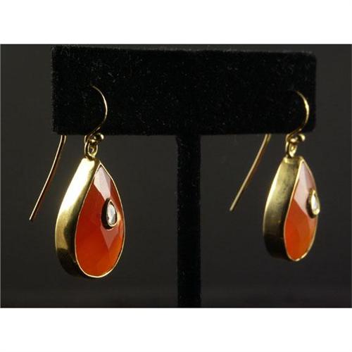 EARRINGS: Pair of bewitching gold pear faceted agate and diamond earrings. Appraisal included.