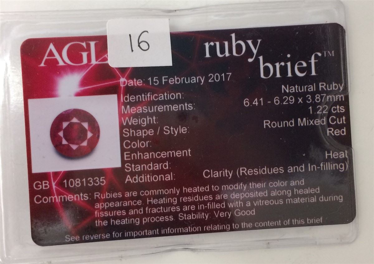 AGL 1.22ct Round Shape Ruby 6.41 x 6.29 x 3.87 AGL #GB 1081335 #R-219