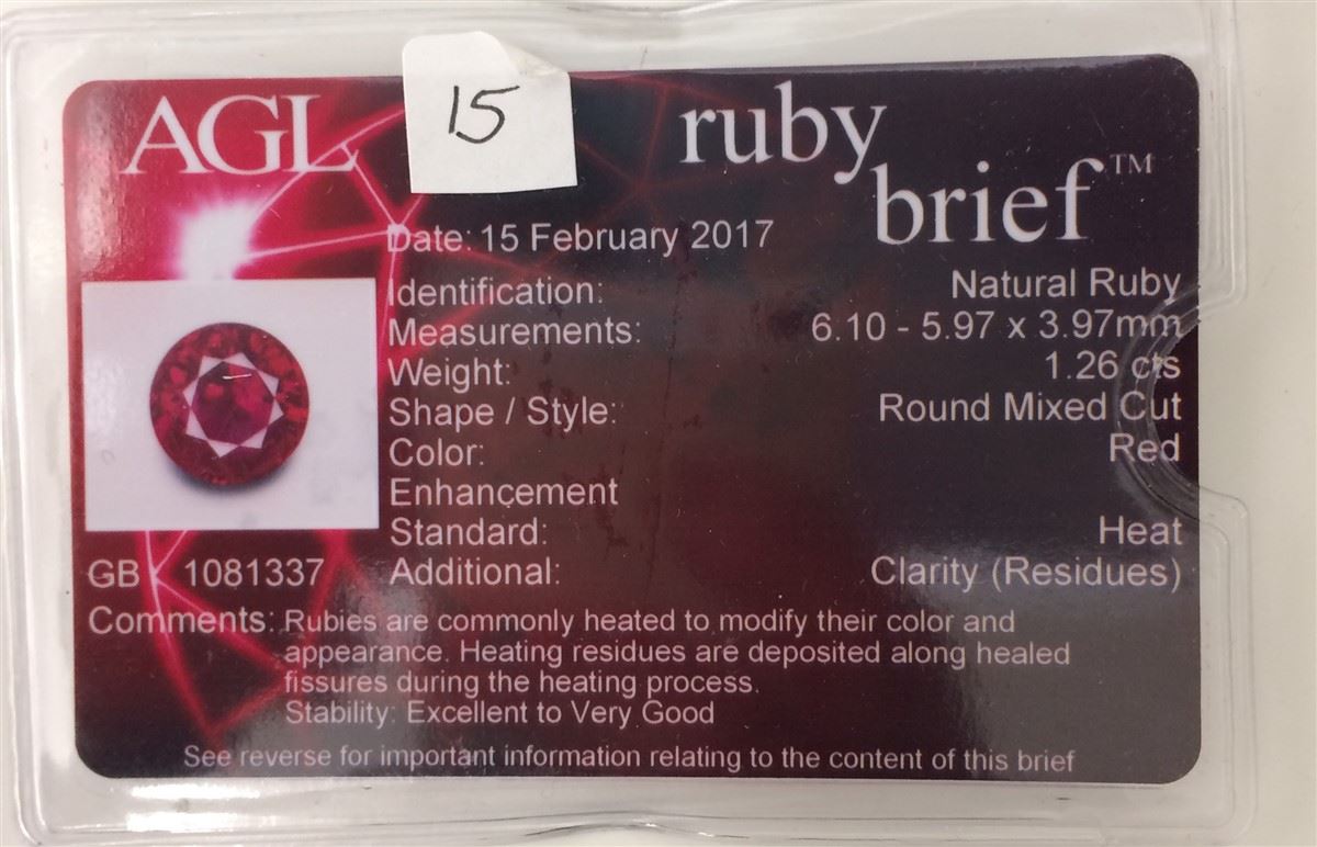 AGL 1.26ct Round Shape Ruby 6.10 x 5.97 x 3.97 AGL #GB 1081337 #R-135