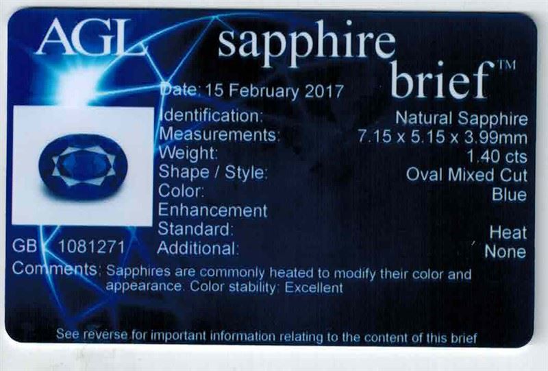 1.40ct Oval Shape Natural Blue Sapphire Dimension- 7.15x5.1x3.9 AGL# 1081271 #BS-515