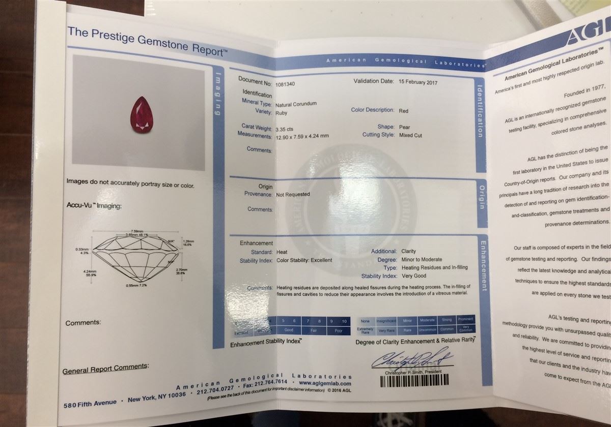 3.35ct Pear Cut Ruby Dimension - 12.9 x 7.59 x 4.24 AGL# 1081340 #R-105