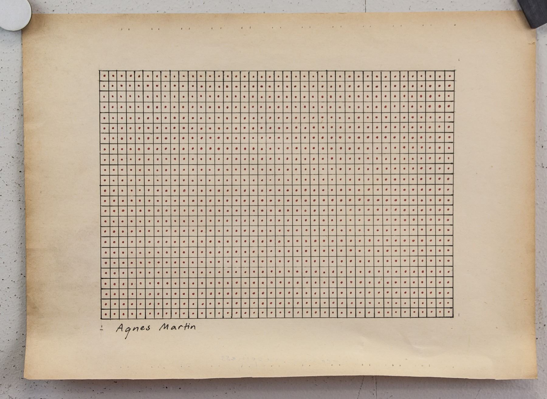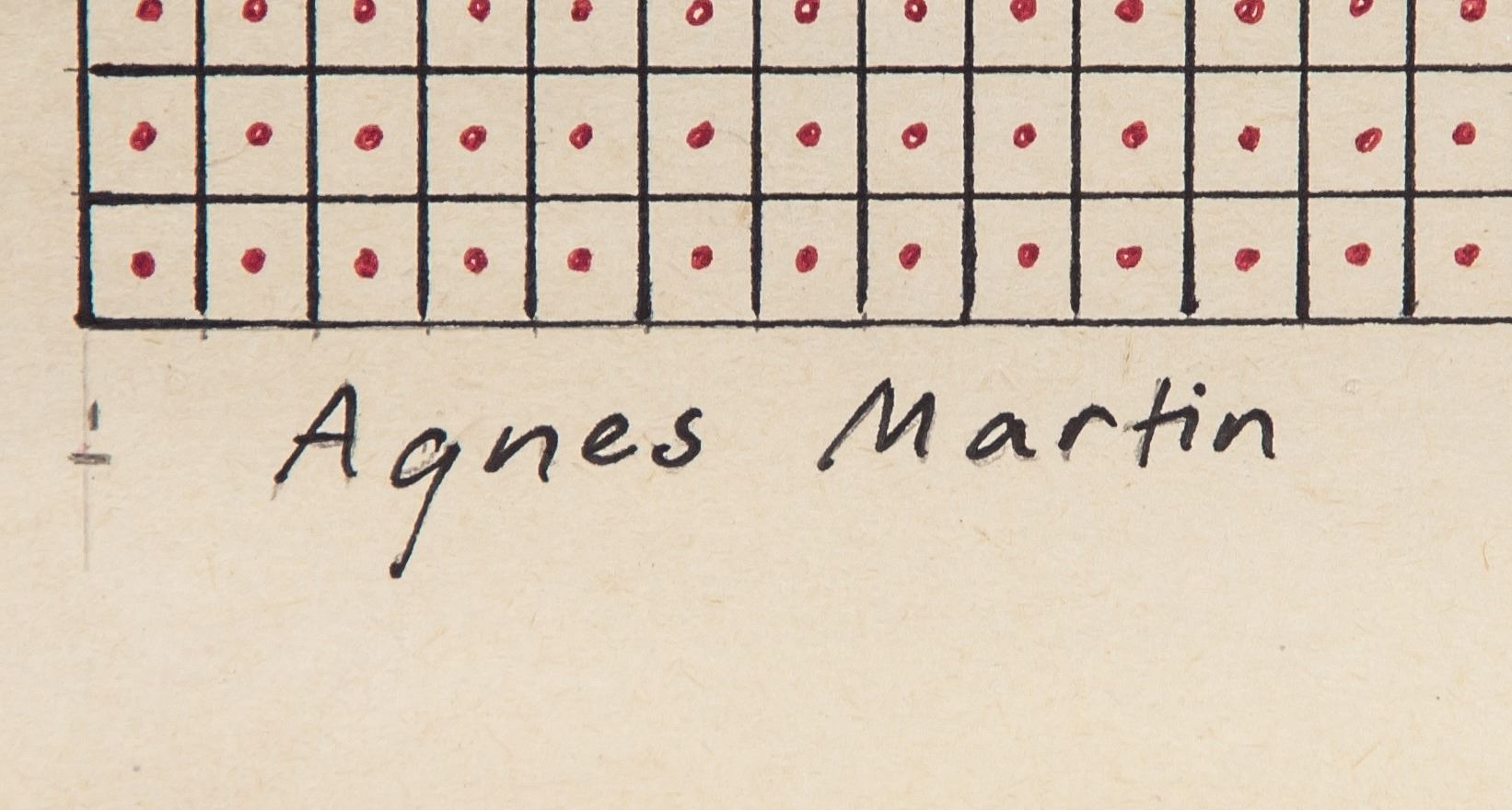 Ink on paper. Signed and attr. Agnes Martin (American-Canadian, 1912-2004). 24 x 34 cm (9.4 x 13.4 in.) Agnes Martin was an American-Canadian painter known for her pared-down geometric abstractions. In pale swathes of color lined with pencil, Martin’s art emerged out of the ethos of Abstract Expressionism while preceding Minimalism’s sparse intensity. Despite the formal rigor of Martin’s practice, she was not striving for perfection—rather, influenced by Taoist and other eastern philosophies, she felt her art was a reflection of the patterns of nature. As a result, Martin titled many of her abstract works after natural phenomena, such as White Flower (1960) or Night Sea (1963). “Nature is like parting a curtain, you go into it. I want to draw a certain response like this,” she once stated. “My paintings are about merging, about formlessness.” Born on March 22, 1912 in Macklin, Canada, she moved to New York to study art education at the Columbia University Teachers College in the 1940s. Later sharing a studio building with Ellsworth Kelly, Robert Indiana, Lenore Tawney, and others in Coenties Slip in Lower Manhattan, she became absorbed in natural phenomena while also suffering from paranoid schizophrenia. She left the city for the relative isolation of New Mexico in 1968, living and working out of a self-made adobe homes for the remainder of her life. Martin died on December 16, 2004 in Taos, NM at the age of 92. A major retrospective exhibition was held at the Guggenheim Museum in New York in 2016. Today, her works are held in the collections of the San Francisco Museum of Modern Art, the National Gallery of Art in Washington, D.C., and the Tate Gallery in London, among others. PROVENANCE: Private European estate