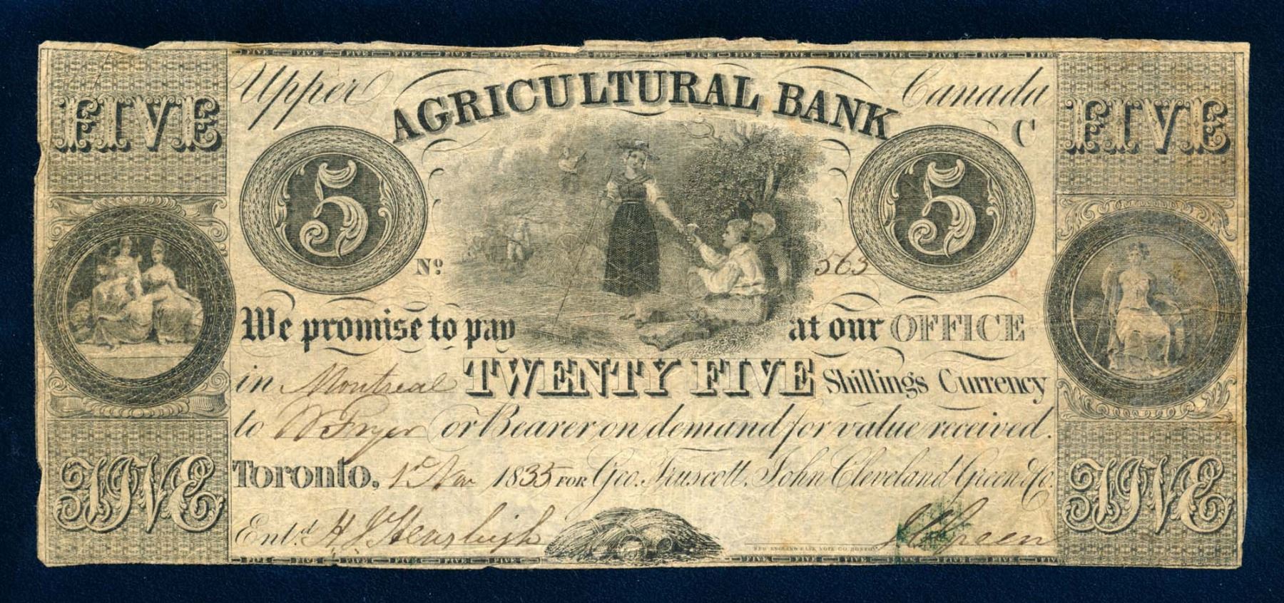 AGRICULTURAL BANK $5.00 1835, 20-12-02-14. Banknote Very Fine+