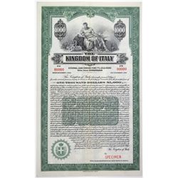 Italy, 1925. $1000 Specimen 7% External Loan Sinking Fund Gold Coupon Bond, Black text with green border and underprint, Allegorical man reclining at