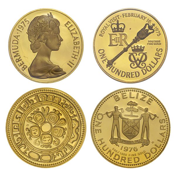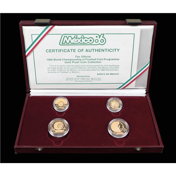 comprising two different 250 Pesos Gold Proofs, each 23 mm, 8.640 grams of .900 Fine gold, and two different 500 Pesos Gold Proofs, each 29 mm, 17.280