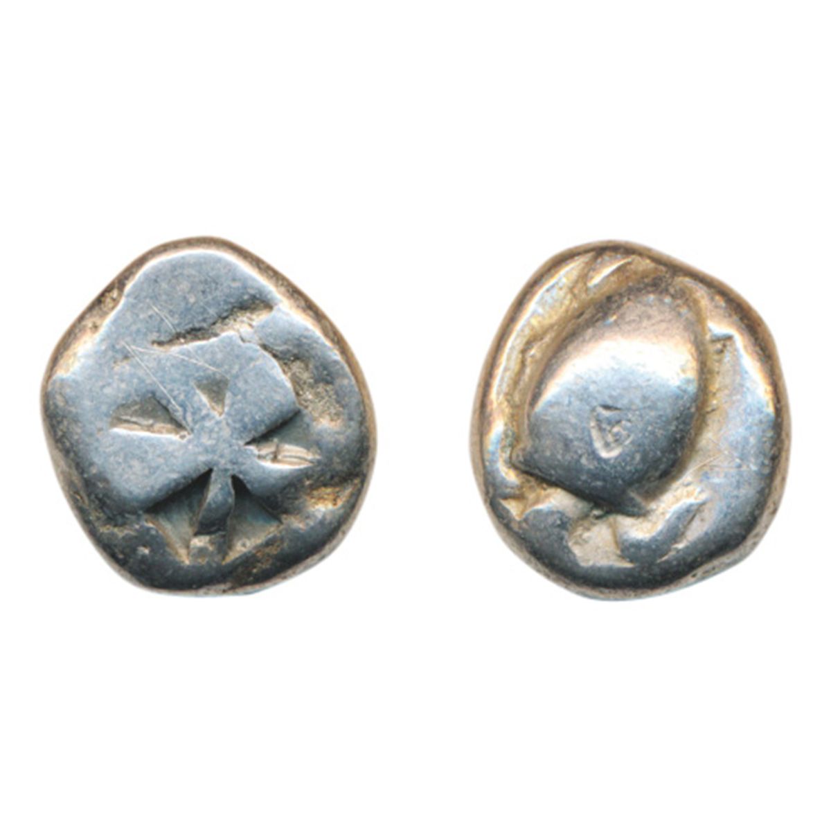 AIGINA. C. 485-480 BC. Silver Stater (12.10 g) Obv: Turtle. Rev: Divided incuse square. Cf. Asyut 541. Countermark on shell of turtle; Fine for issue.
