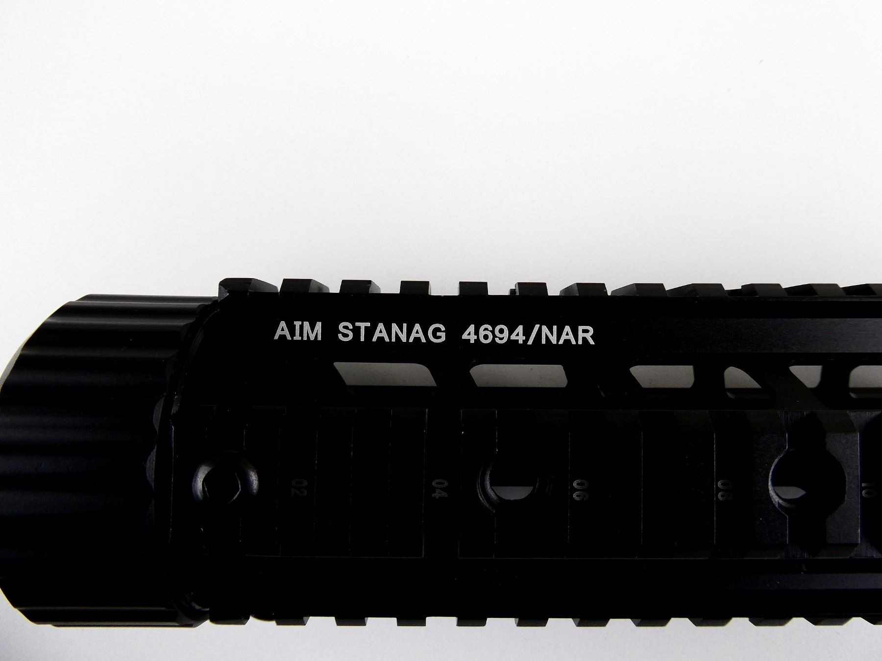 LOT INCLUDES; (1) AIM SPORTS AR15 / M4 FREE FLOATING QUAD RAIL HAND GUARD, ONE PIECE, BLACK ALUMINUM CONSTRUCTION, WITH FOUR SIDED RAILS, FREE FLOAT, MARKED: "AIM STANAG 4694/NAR", APPEARS NOS WITH ORIGINAL PACKAGING, OAL APPROX. 10.25" & (1) VERTICAL GRIP, MOUNTS TO RAIL, BLACK POLYMER CONSTRUCTION, OAL APPROX. 5.5". SEE PHOTOS.