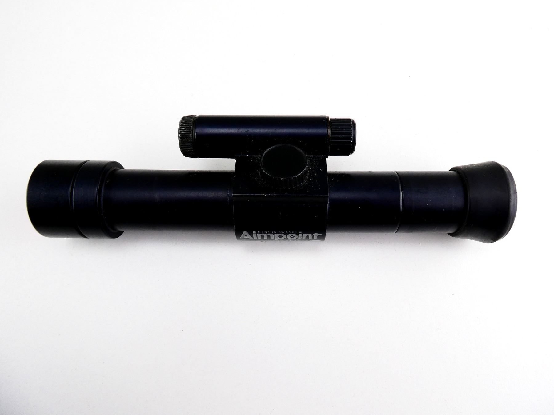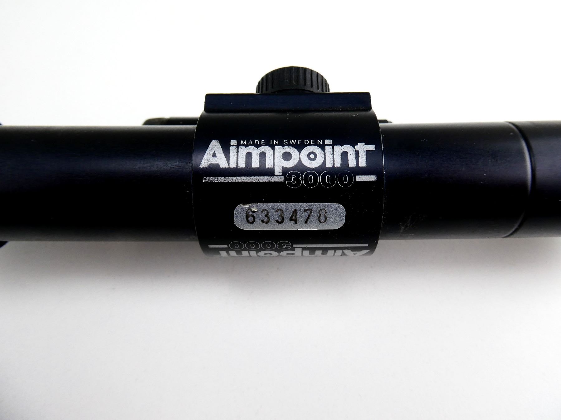 (1) CLEAR OPTICS, WORKING RED DOT RETICLE, WINDAGE & ELEVATION KNOBS TURN, MARKED: "633478", "AIMPOINT 3000", ETC., SHOWS WEAR & TEAR / USE MARKS SEE PHOTOS.
