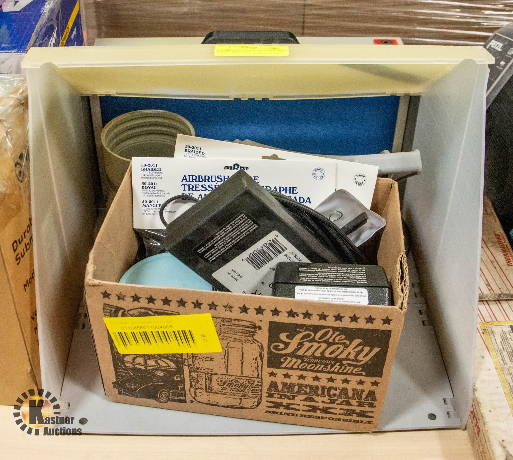 2 AIR BURSH HOSES, CLEANING KIT, COUPLER AND SPRAY BOOTH(REQUIRES NEW **ALL ITEMS MUST BE REMOVED BY 5PM SATURDAY, OCTOBER 14TH 2023. ALL REMAINING ITEMS WILL BE SUBJECT TO A $6.00 PER DAY STORAGE CHARGE. ANY ITEMS REMAINING AFTER MONDAY, OCTOBER 30TH, 2023 WILL BE CONSIDERED FORFEITED. NO REFUNDS WILL BE ISSUED FOR FORFEITED ITEMS. TO SCHEDULE A PICK UP APPOINTMENT CLICK HERE