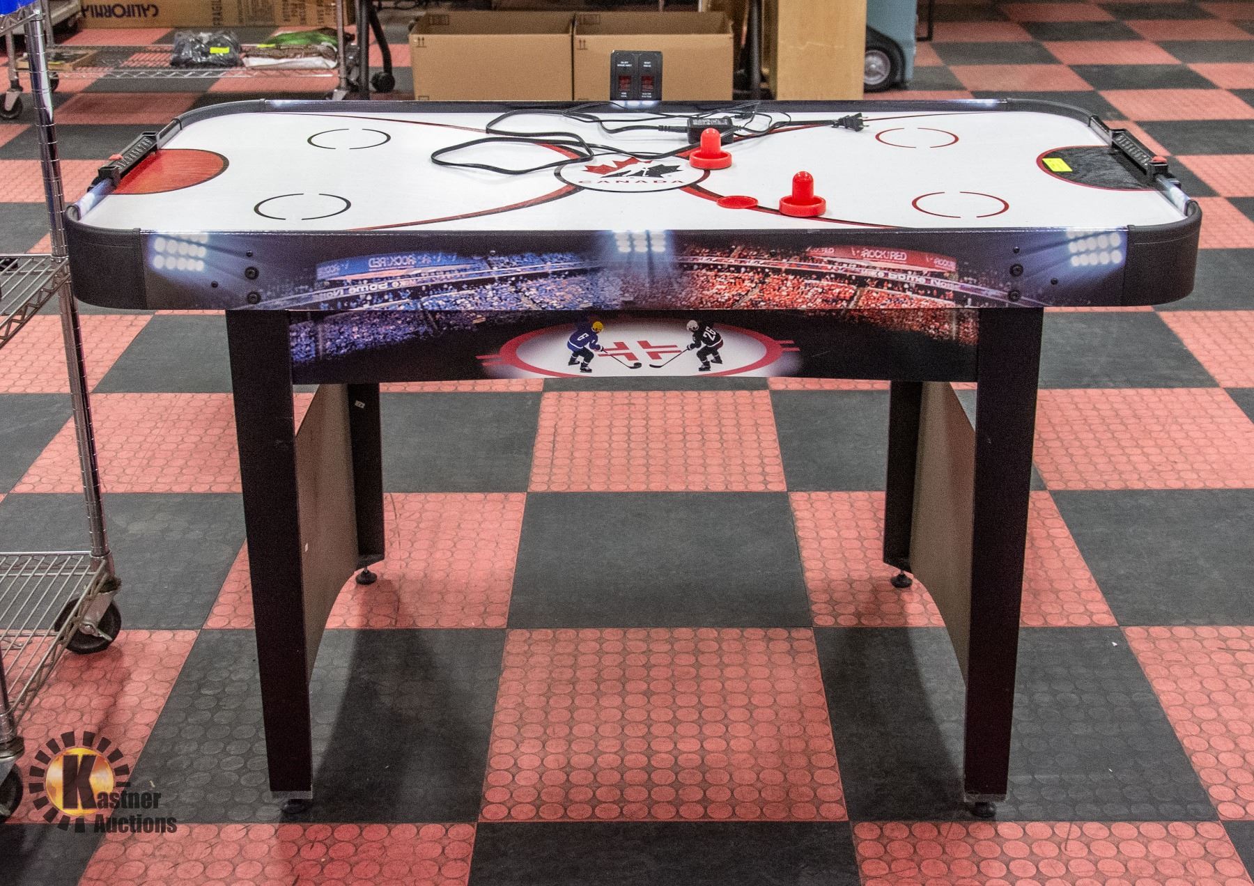 AIR HOCKEY TABLE WITH PUCK/DISK AND TWO PADDLES. **ALL ITEMS MUST BE REMOVED BY 5PM SATURDAY, JANUARY 13TH 2023. ALL REMAINING ITEMS WILL BE SUBJECT TO A $6.00 PER DAY STORAGE CHARGE. ANY ITEMS REMAINING AFTER MONDAY, JANUARY 29TH, 2023 WILL BE CONSIDERED FORFEITED. NO REFUNDS WILL BE ISSUED FOR FORFEITED ITEMS. TO SCHEDULE A PICK UP APPOINTMENT CLICK HERE