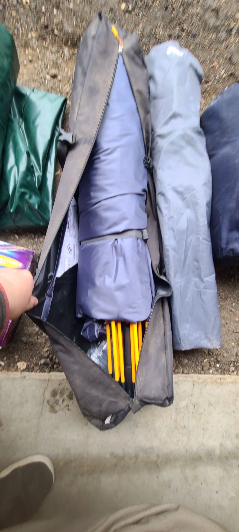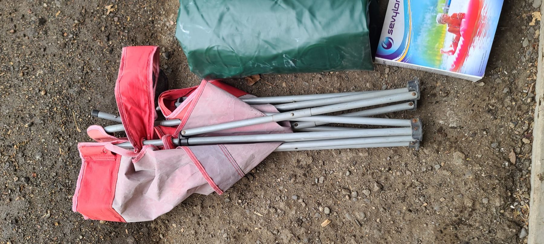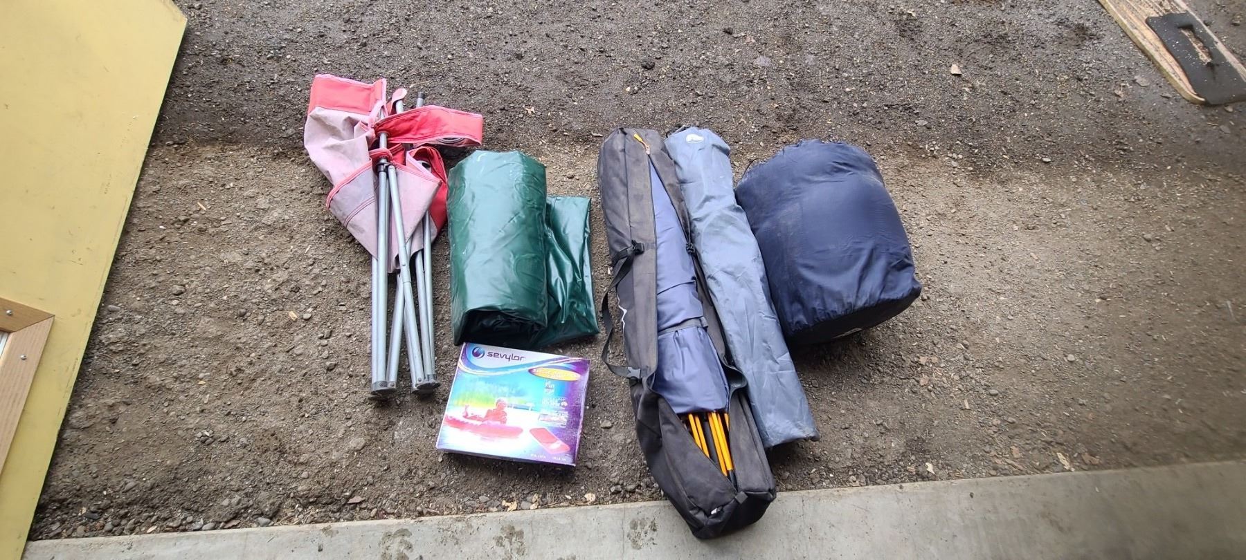 AIR MATRESS, TENT, SLEEPING BAG AND TWO CAMPING CHAIRS