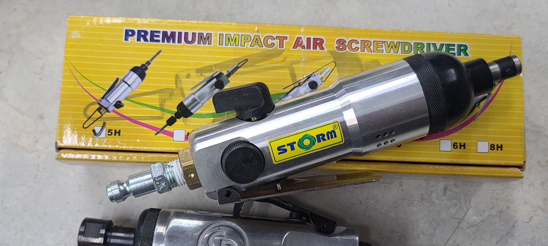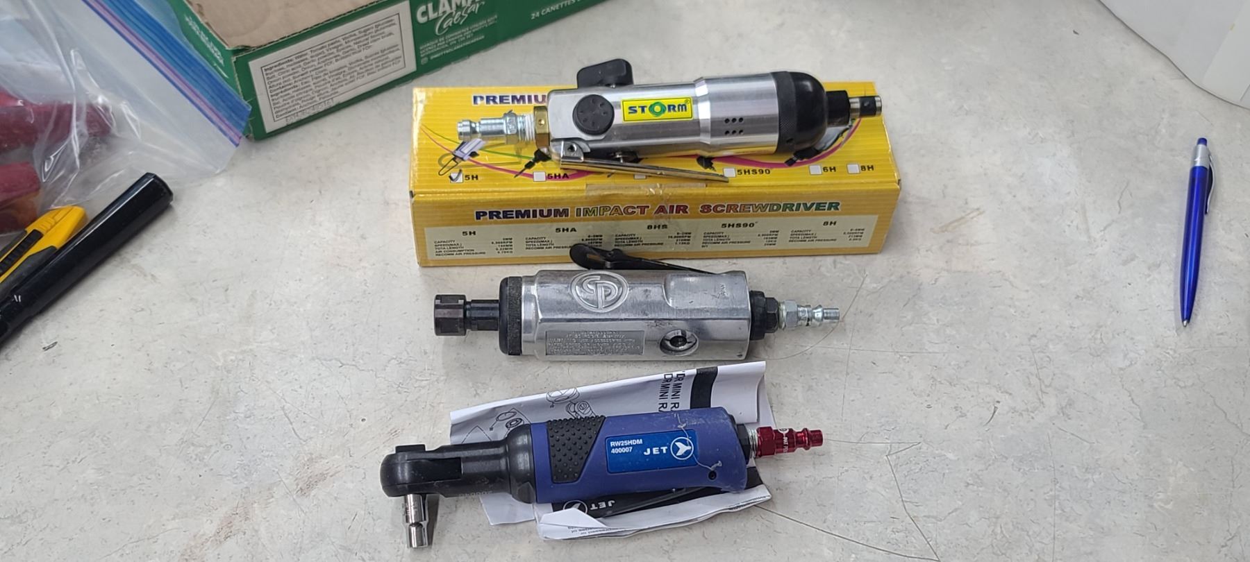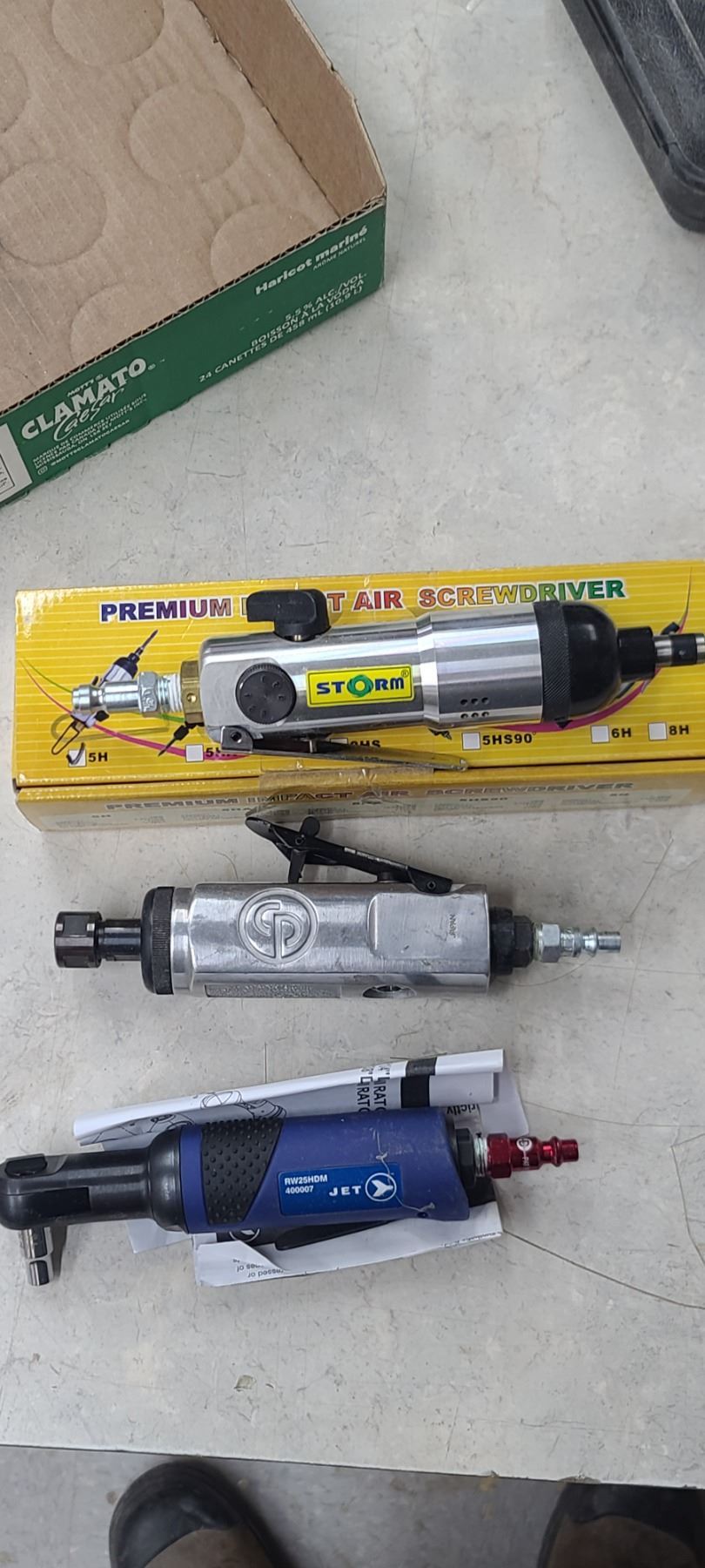 AIR TOOLS: AIR RATCHET BY JET, CHICAGO GRINGDER AND STORM 5H IMPACT AIR SCREW DRIVER