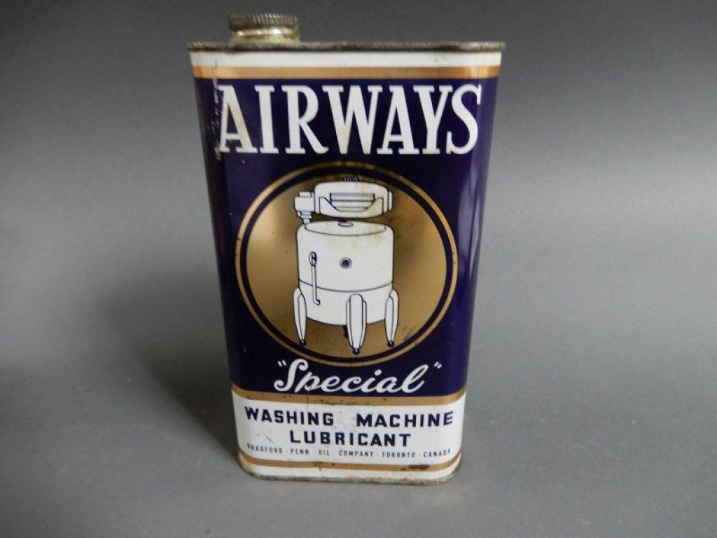 AIRWAYS WASHING MACHINE LUBRICANT IMP. QT. CAN BILINGUAL- CORRECT CAP- STAINING LOCATION: LOWER BACKROOM