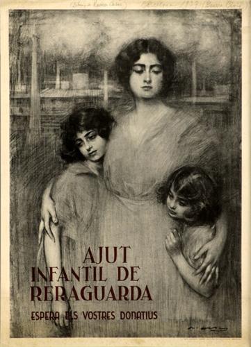 CASAS, R. AJUT INFANTIL A RERAGUARDA. 1937. 73x53cm. (28,8x21in.). Litografía. A-.