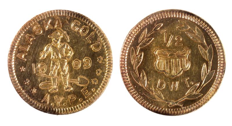 Yukon Pacific Exhibition Token. DTW 1/2, gold 25c. Graded mint state 65 by NGC.