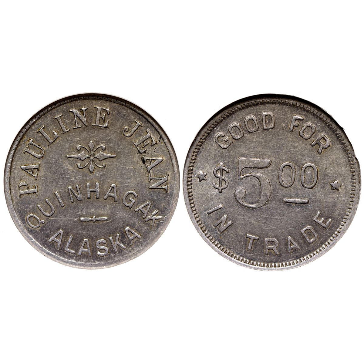NGC. SN1583388-007. GF / $5 / IT. R / al / 35mm. Pauline Jean is the wife of Joe Jean, who issued tokens at Goodnews Bay. AU58.