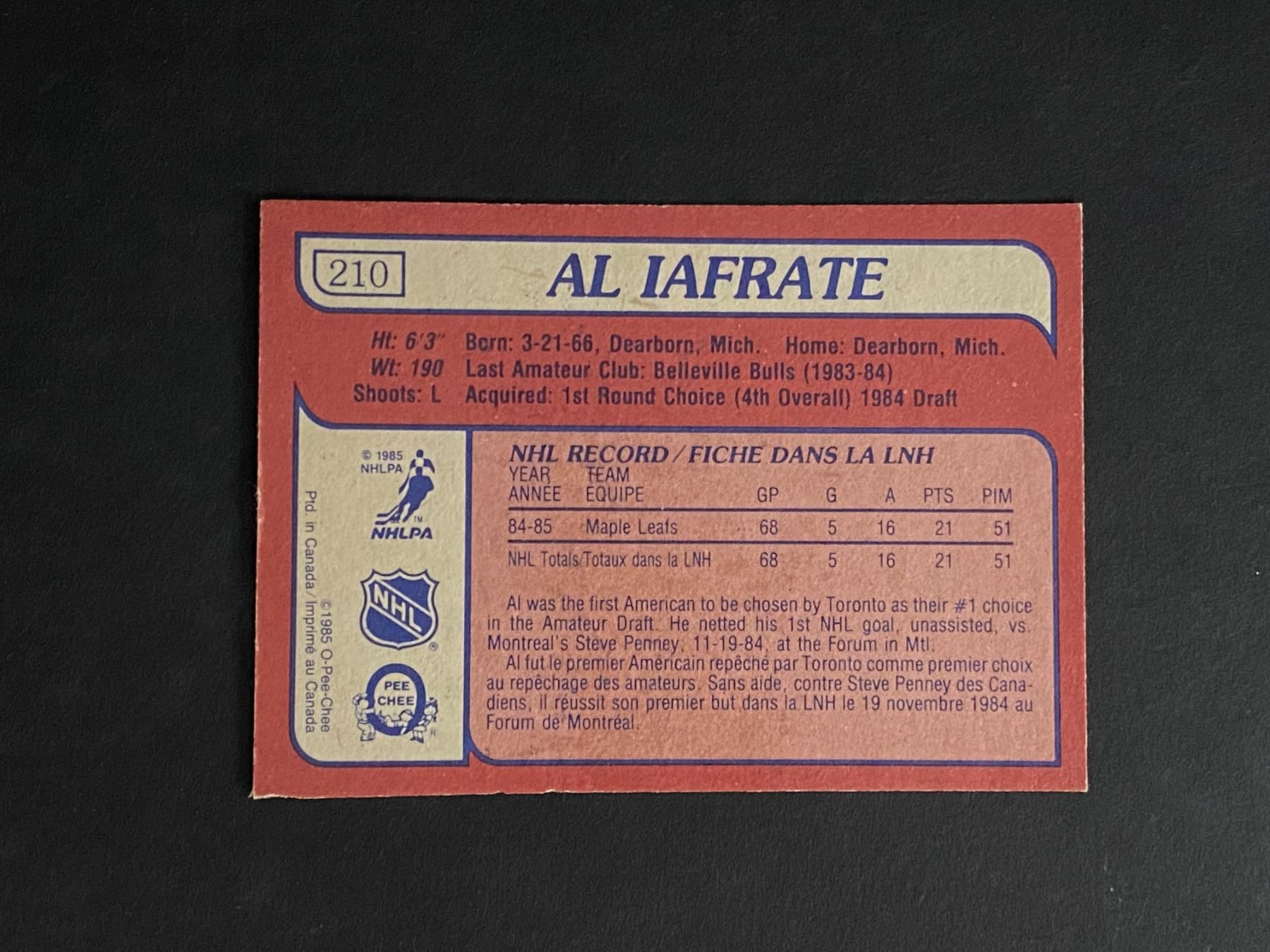 AL IAFRATE ROOKIE CARD 1985 0-PEE-CHEE #210