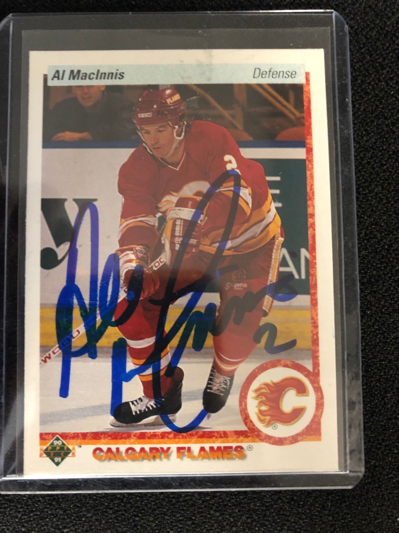 AL MacINNIS SIGNED 1990-91 UPPER DECK HOCKEY CARD