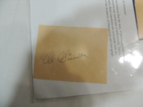 AL SIMMONS CUT SIGNATURE AUTOGRAPH Q.J.. QUICK JUDGEMENT FROM ACADEMY OF MANUSCRIPT AND AUTOGRAPHS. AS SHOWN. VIEW PICTURE FOR DETAIL. PLEASE BE ADVISED, AND INFORMED REGARDING SIGNATURES OR AUTOGRAPHS THAT WE SELL AT AUCTION: WE ARE NOT AUTHENTICATORS, AND WE DO NOT AUTHENTICATE, OR VALIDATE ANY AUTOGRAPHS OR SIGNATURES THAT WE OFFER AT AUCTION. SOME AUTOGRAPHS OR SIGNATURES MAY COME WITH AN AUTHENTICATION FROM ANY ONE OF LITERALLY HUNDREDS OF AUTHENTICATORS ACROSS THE COUNTRY, AND AROUND THE WORLD. WE DO NOT ENDORSE ANY AUTHENTICATOR, NOR DO WE GUARANTEE THAT ANY AUTOGRAPH OR SIGNATURE IS AUTHENTIC, OR THAT IT WILL PASS AUTHENTICATION BY ANY AUTHENTICATOR. ALL AUTOGRAPHS OR SIGNATURES ARE SOLD