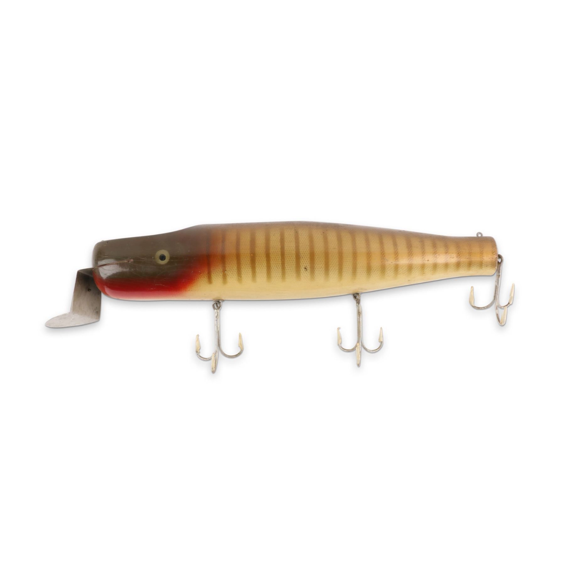 AL&W, Canada. 1950s. Material: Wood. Quantity: 1. From Guelph, Ontario tackle shop. Grade: VG+. 19.5" x 3.5" x 3.5" Est. $600-800.