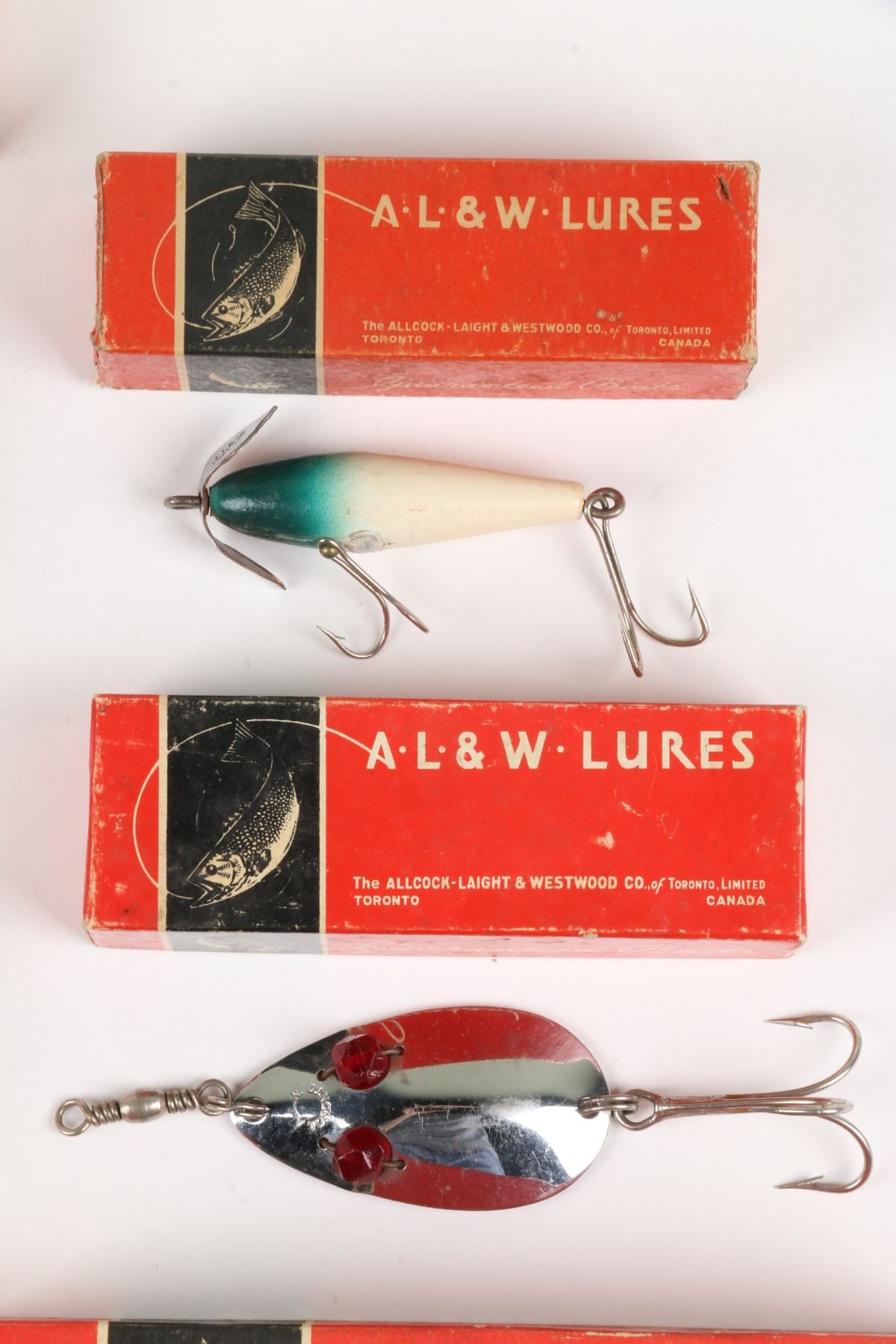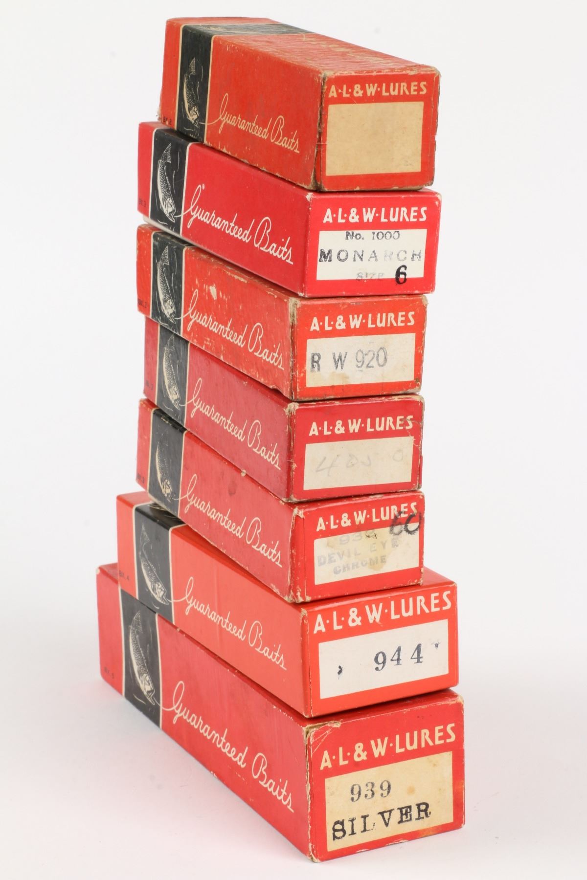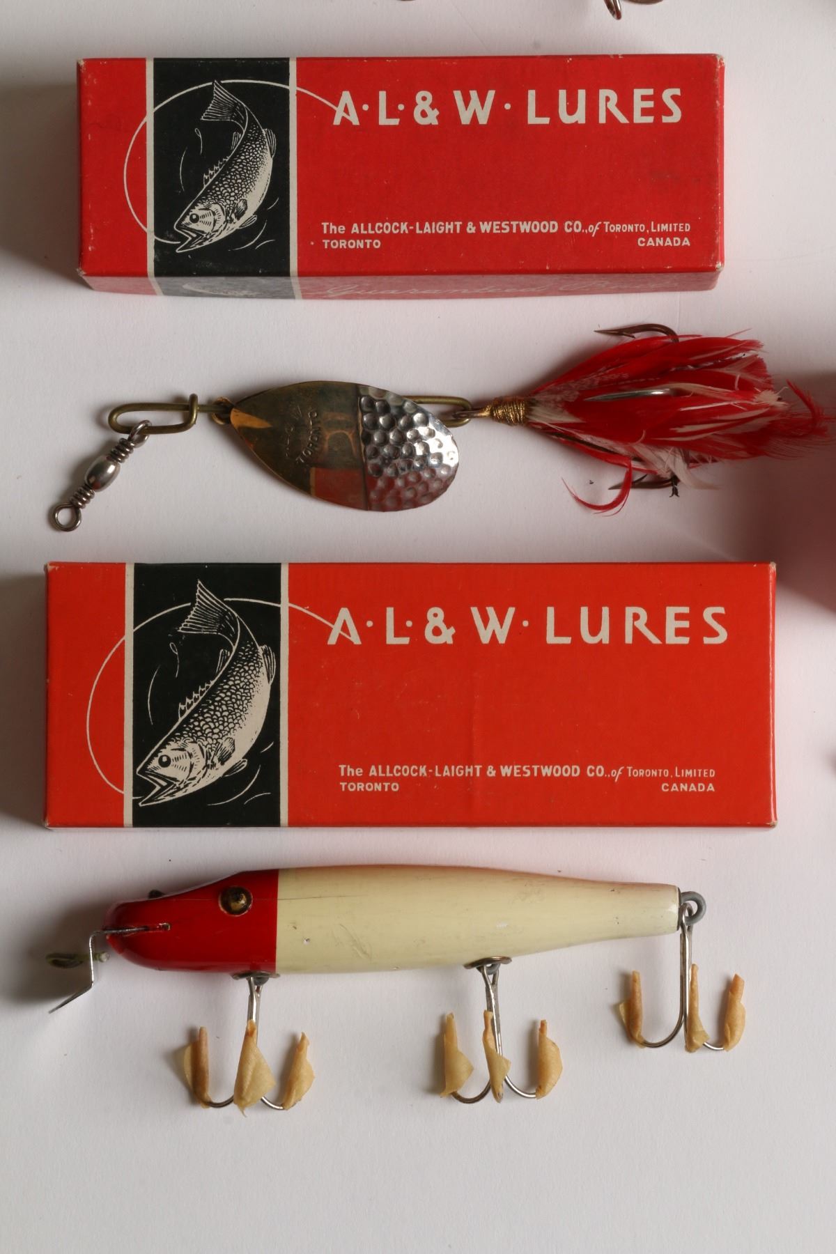 AL&W, Canada. 1950s. Boxed. Material: Metal, Wood. Quantity: 7. Grade: G. 4.75" - 6.5" boxes. Est. $100-125.