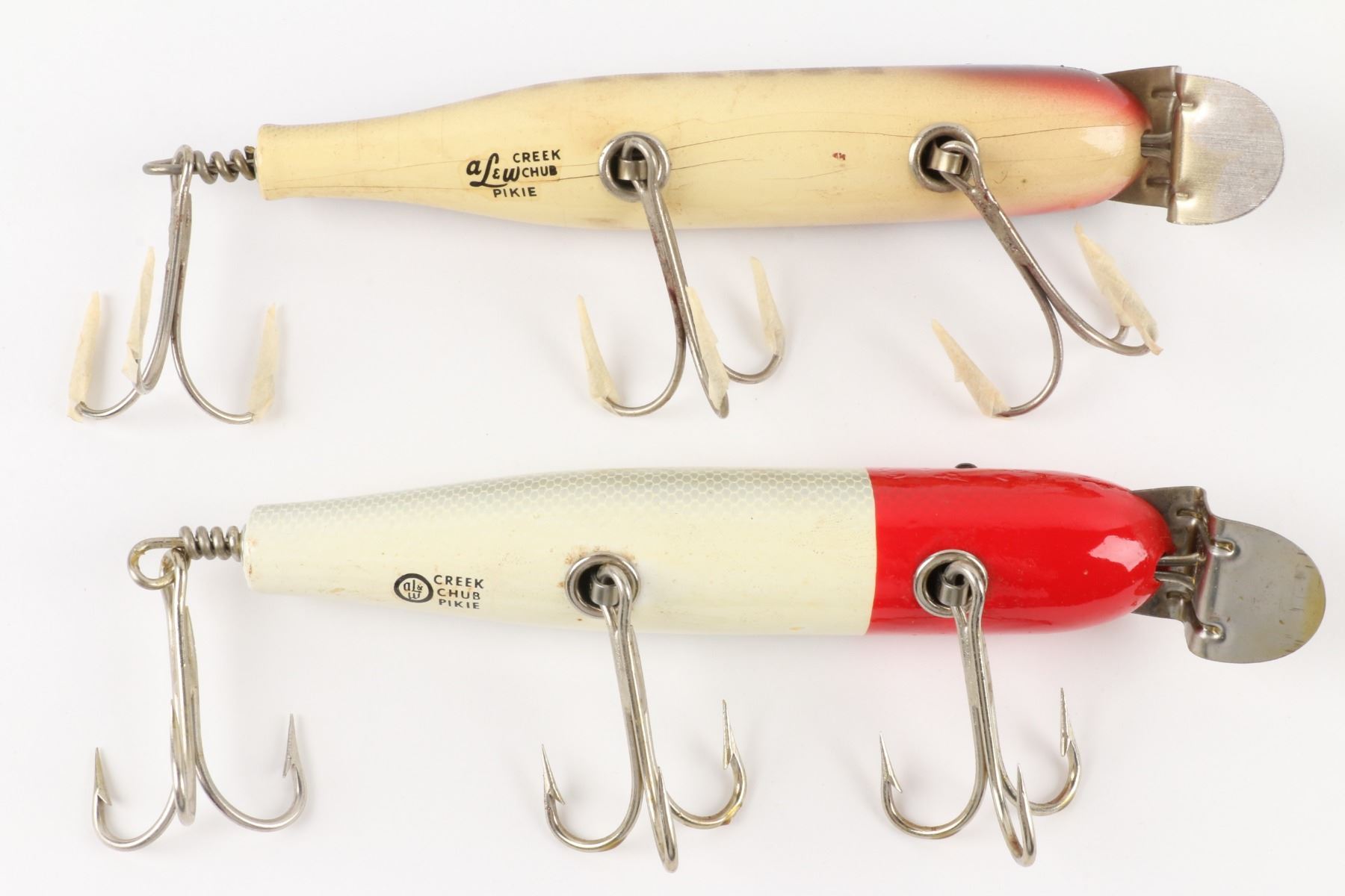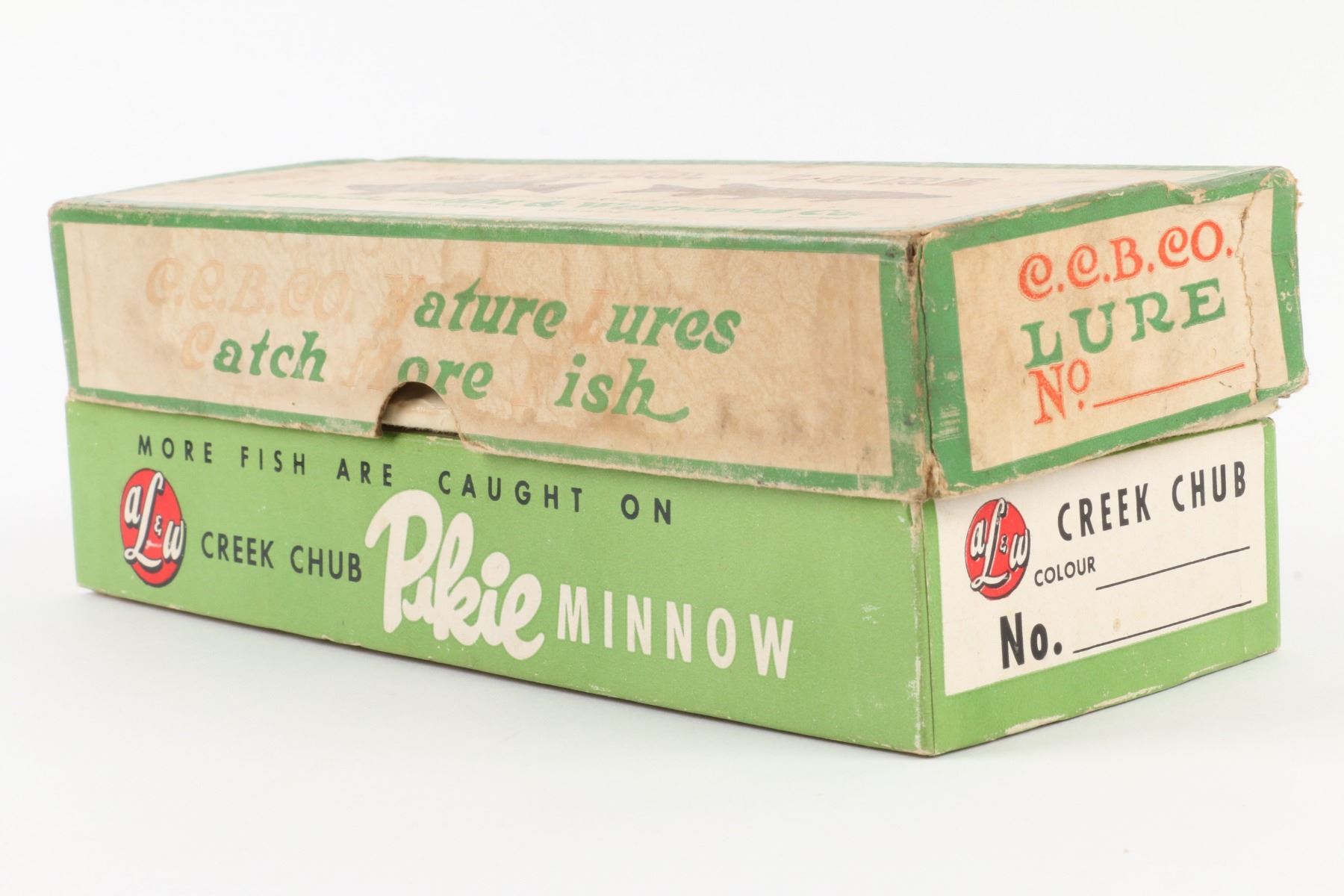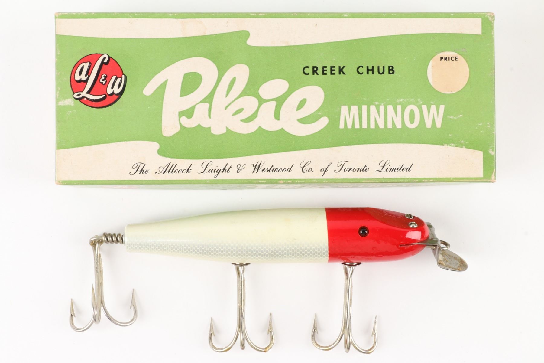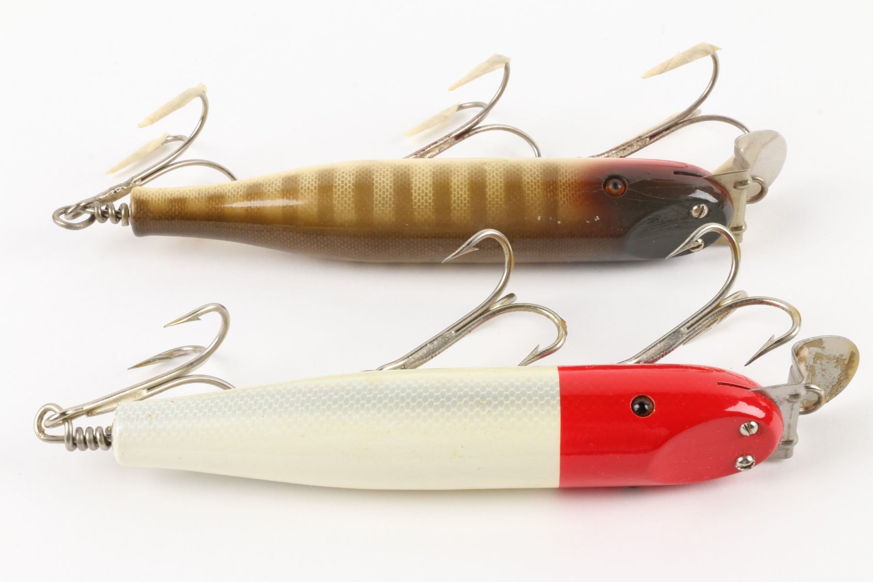 AL&W, Canada. 1940s to 1950s. Material: Wood. Quantity: 2. Pike scale and Red and White. Grade: VG. 8.25" boxes. Est. $100-125.