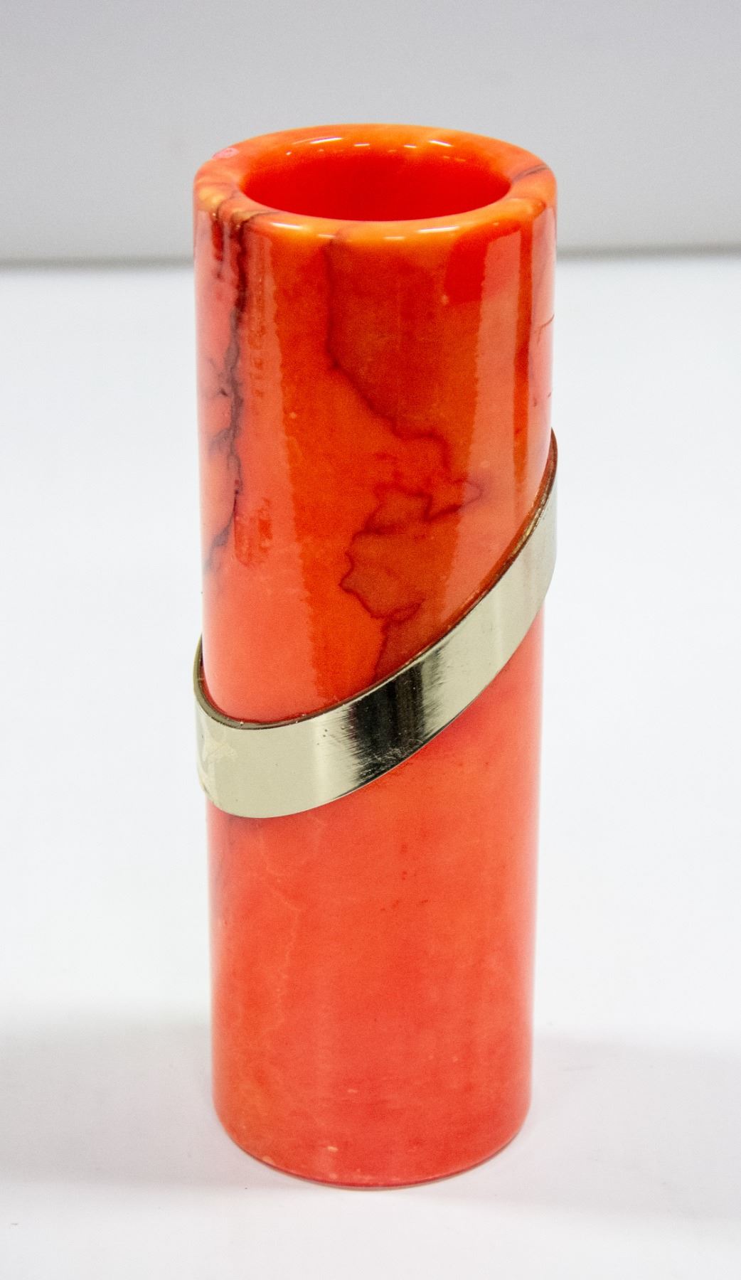 ALABASTER ORANGE ITALIAN MARBLE VASE 6" TALL