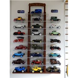 GOLDEN AGE OF FORD DISPLAY 25 TOY VEHICLES - 20 1/2" X 3 1/4" X 31 1/2" LOCATION: LOWER RIGHT