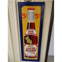 FRAMED 5 CENT PEPSI SST SIGN 50" X 17 1/2" - MADE IN CANADA- SOME PAINT LOSS