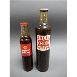 2 SHELL X-100 U.S QT. & PT. OIL BOTTLES- FULL CORRECT CAPS LOCATION: LOWER LEFT