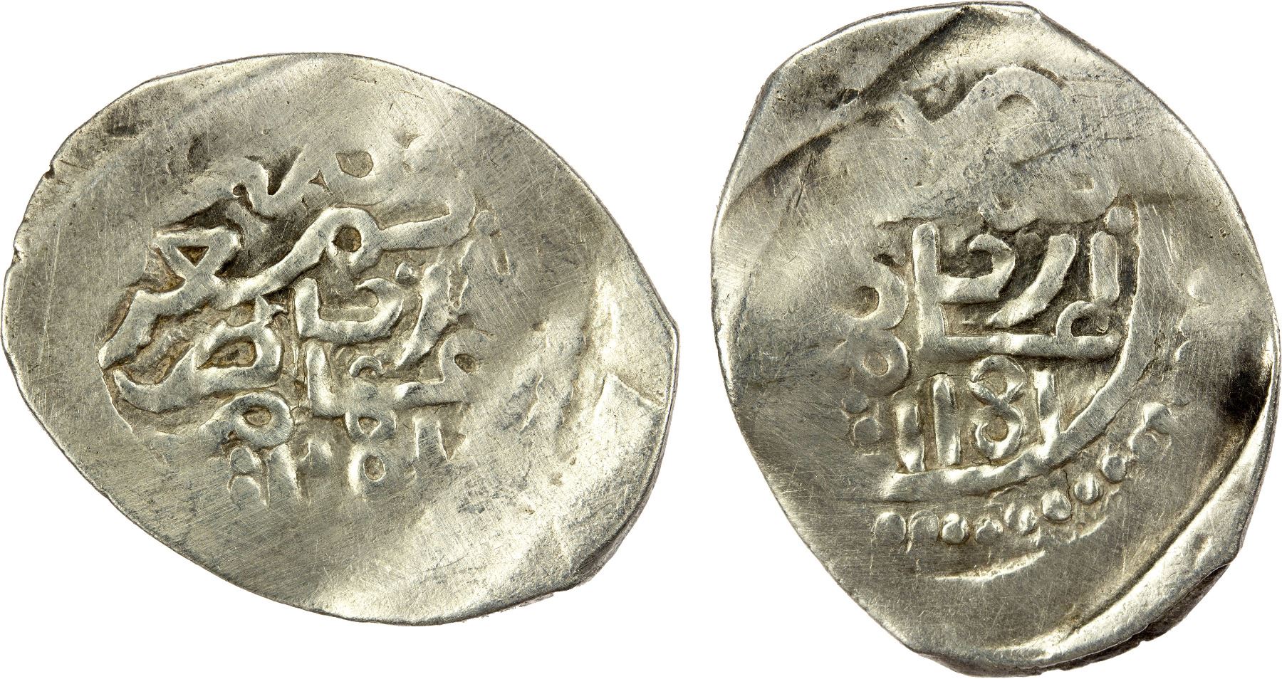 ALAWI SHARIF: Muhammad III, 1757-1790, AR dirham (2.77g), Thughr Rabat, AH1181//1181, A-589.1, E-204, extremely rare mint, active only in AH1181, about 20% flat strike, crude VF, RRR. It is not known if Thughr Rabat was a temporary name for Rabat al-Fath or an emergency location outside the city walls; regular coins of Rabat al-Fath resumed in AH1182.