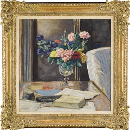 <B>ALBERT ANDRÉ</B></I> (French 1869-1954)<BR><I>Roses dans un Verre</B></I><BR>Oil on canvas<BR>25-1/2 x 25-3/4 inches (64.8 x 65.4 cm)<BR>Signed lower left: Albert André <BR><BR>Provenance:<BR>David B. Findlay Galleries<BR><BR><BR><BR><b>Shipping:</b> Requires 3rd Party Shipping (<a target="_blank" href="http://www.heritageauctions.com/common/shipping.php">view shipping information</a>)
