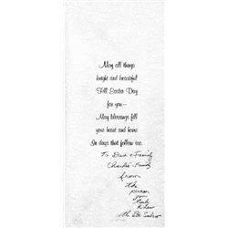 <b>1480. ALBERT DE SALVO </b>Rare signed greeting card, 10" x 6" (open), an Easter card inscribed: "<i>To Dave & Family Charlie - Family from the person you truly knew Al. De Salvo</i>". With holograph mailing envelope (torn). Very good.<b> $300-400</b>