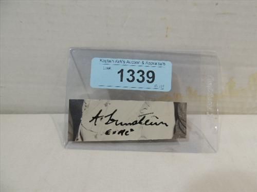 ALBERT EINSTEIN CUT SIGNATURE AUTOGRAPH NO COA. AS SHOWN. VIEW PICTURE FOR DETAIL. PLEASE BE ADVISED, AND INFORMED REGARDING SIGNATURES OR AUTOGRAPHS THAT WE SELL AT AUCTION: WE ARE NOT AUTHENTICATORS, AND WE DO NOT AUTHENTICATE, OR VALIDATE ANY AUTOGRAPHS OR SIGNATURES THAT WE OFFER AT AUCTION. SOME AUTOGRAPHS OR SIGNATURES MAY COME WITH AN AUTHENTICATION FROM ANY ONE OF LITERALLY HUNDREDS OF AUTHENTICATORS ACROSS THE COUNTRY, AND AROUND THE WORLD. WE DO NOT ENDORSE ANY AUTHENTICATOR, NOR DO WE GUARANTEE THAT ANY AUTOGRAPH OR SIGNATURE IS AUTHENTIC, OR THAT IT WILL PASS AUTHENTICATION BY ANY AUTHENTICATOR. ALL AUTOGRAPHS OR SIGNATURES ARE SOLD