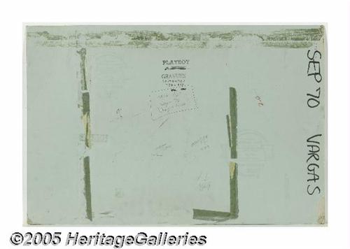 <B>ALBERTO VARGAS (American 1896-1982)</B></I> <BR>Original Pin-Up Art <BR><I>Playboy</B></I>, September, 1970 <BR><I>Vargas Girl</B></I>, 1970 <BR>Caption: "I believe in black pride, but there are some things I'd <I>rather</B></I> take lying down." <BR>Watercolor and pencil on board <BR>20in. x 30in. (sight size) <BR>Signed lower right: Vargas <BR><BR><Keywords: pin-up, nude, centerfold, playboy, airbrush, watercolor, painting>