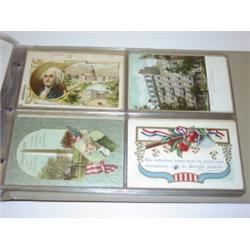 ALBUM OF APPROX. 180 GEORGE WASHTINGTON POSTCARDS. All feature pictorial images of George Washington as well as related landmarks. Many are gilt decorated.