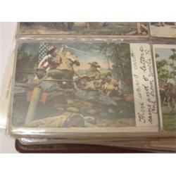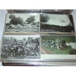 ALBUM OF APPROX. 225 WORLD WAR I POSTCARDS. Feature military and soldier scenes from World War I.