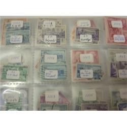ALBUM OF APPROX. 750 STAMPS. Range in dates from 1870-1970. 19th century stamps feature Jackson, Washington, Franklin, Taylor, & Hamilton.
