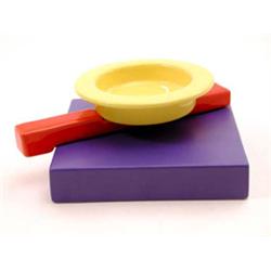 Keramik. Heller Scherben mit farbiger, am Sockel matter Überlaufglasur in Royalblau, Gelb und Rot. Aus 3 Teilen zusammengesetztes Objekt aus großem quadratischem Flachsockel, diagonal aufliegendem, einseitig verbreitertem Stab und darauf eingesetzter Schale mit horizontal auskragendem Rand. 18 x 16 cm. Bez.: Firmenmarke (aufglasurschwarzer Stempel). 1985 Lit.: Memphis, Ceramique Argent Verre 1981-1987, Ausst.kat. des Musées de Marseille 1991, Abb. S. 77