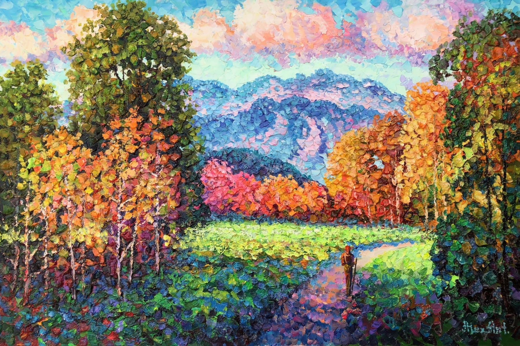 Acrylic on canvas, thickly painted in his characteristic Electric Impressionism. Entitled, "Lonely Traveler" (2018) on verso. Signed by Alexander Antanenka (Russian-American, b. 1951, based in the United States) on the lower right corner. Accompanied by a certificate signed by the artist. 24 x 36 inches. Alexander Antanenka was born in Brest, Soviet Union on February 16th, 1951 where he attended art school in grade school, he also attended the Art Academy in Leningrad, Russia and graduated at the top of his class in 1978. Antanenka fled to Siberian City of Maganda after his parents were killed in the Chernobyl disaster, and he was displeased with the Soviet governments attempted to cover up this tragic event. Many artists, poets and politicians who did not believe in their governments practice exiled here. Alexander’s work changed while he resided in the city of Maganda and he was able to express his emotions through his artwork. Many Japanese were interested in his art but unfortunately he was unable to have an exhibition because the KGB restricted him. After the fall out of the Soviet he was able to hold his own exhibitions in different cities such as: Maganda in 1990, Vladivostok in 1992, Minsk and Brest in 1996, just to name a few. Alexander now resides in the United States and his artwork is in private collections around the world. Exhibited at the Amsterdam Whitney Gallery in Chelsea (New York). PROVENANCE: From the family of the artist.