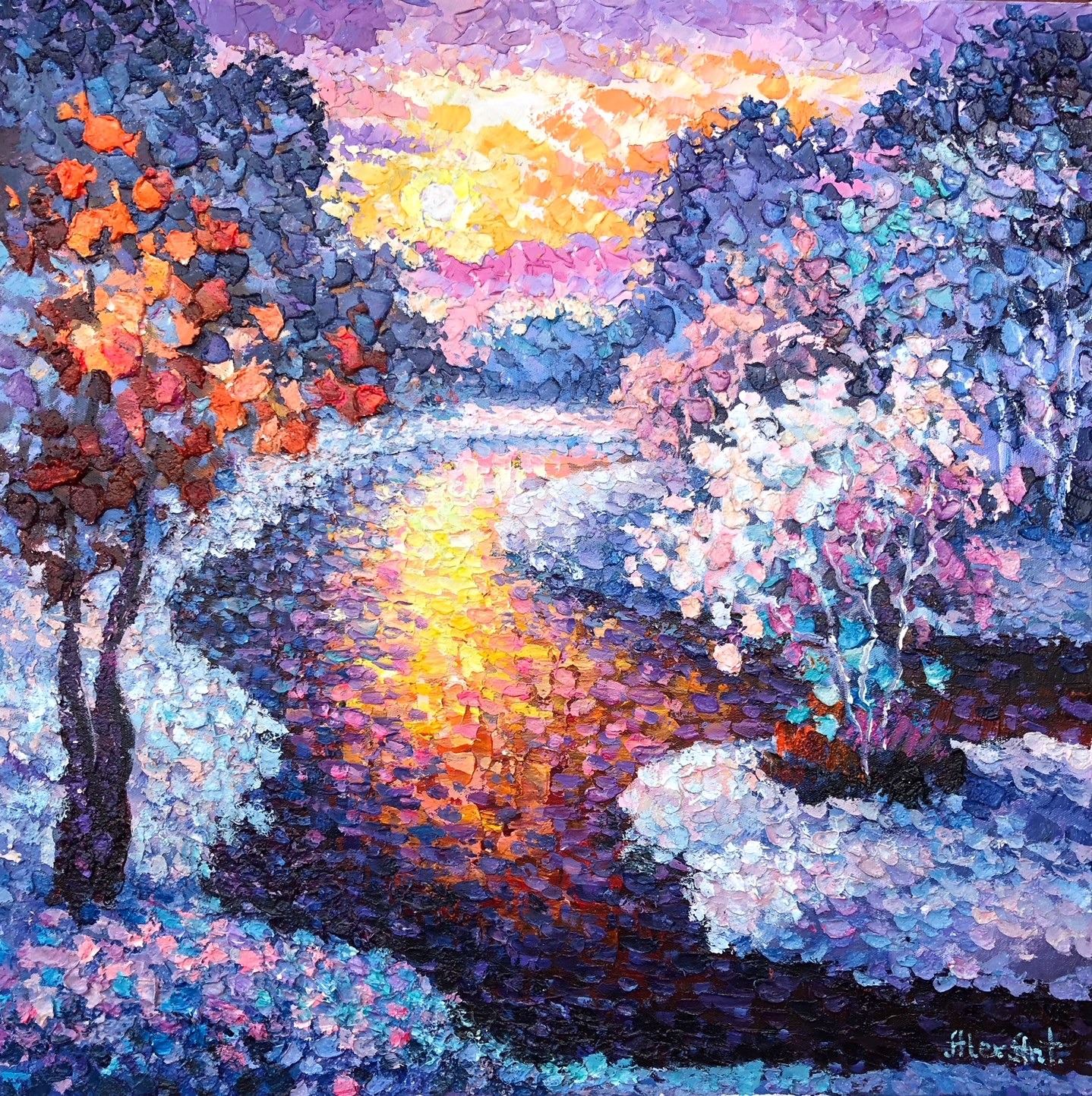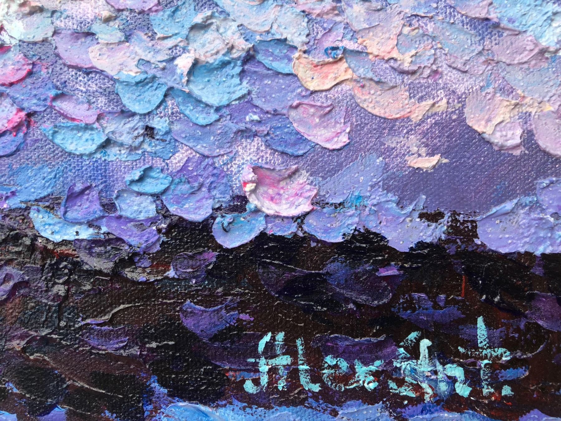 Acrylic on canvas, thickly painted in his characteristic Electric Impressionism. Entitled, "Alaska Sunset" (2018) and dated on verso. Signed by Alexander Antanenka (Russian-American, b. 1951, based in the United States) on the lower right corner. Accompanied by a certificate signed by the artist. 24 x 20 in. Alexander Antanenka was born in Brest, Soviet Union on February 16th, 1951 where he attended art school in grade school, he also attended the Art Academy in Leningrad, Russia and graduated at the top of his class in 1978. Antanenka fled to Siberian City of Maganda after his parents were killed in the Chernobyl disaster, and he was displeased with the Soviet governments attempted to cover up this tragic event. Many artists, poets and politicians who did not believe in their governments practice exiled here. Alexander’s work changed while he resided in the city of Maganda and he was able to express his emotions through his artwork. Many Japanese were interested in his art but unfortunately he was unable to have an exhibition because the KGB restricted him. After the fall out of the Soviet he was able to hold his own exhibitions in different cities such as: Maganda in 1990, Vladivostok in 1992, Minsk and Brest in 1996, just to name a few. Alexander now resides in the United States and his artwork is in private collections around the world. Exhibited at the Amsterdam Whitney Gallery in Chelsea (New York). PROVENANCE: From the family of the artist.