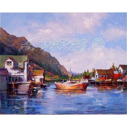 This is a Master Work,By World Famous Impressionist ALEX PEREZ.Titled "Nordland Fishing Village".Important Art, for the Serious Collector.True Investment Material.C.B.