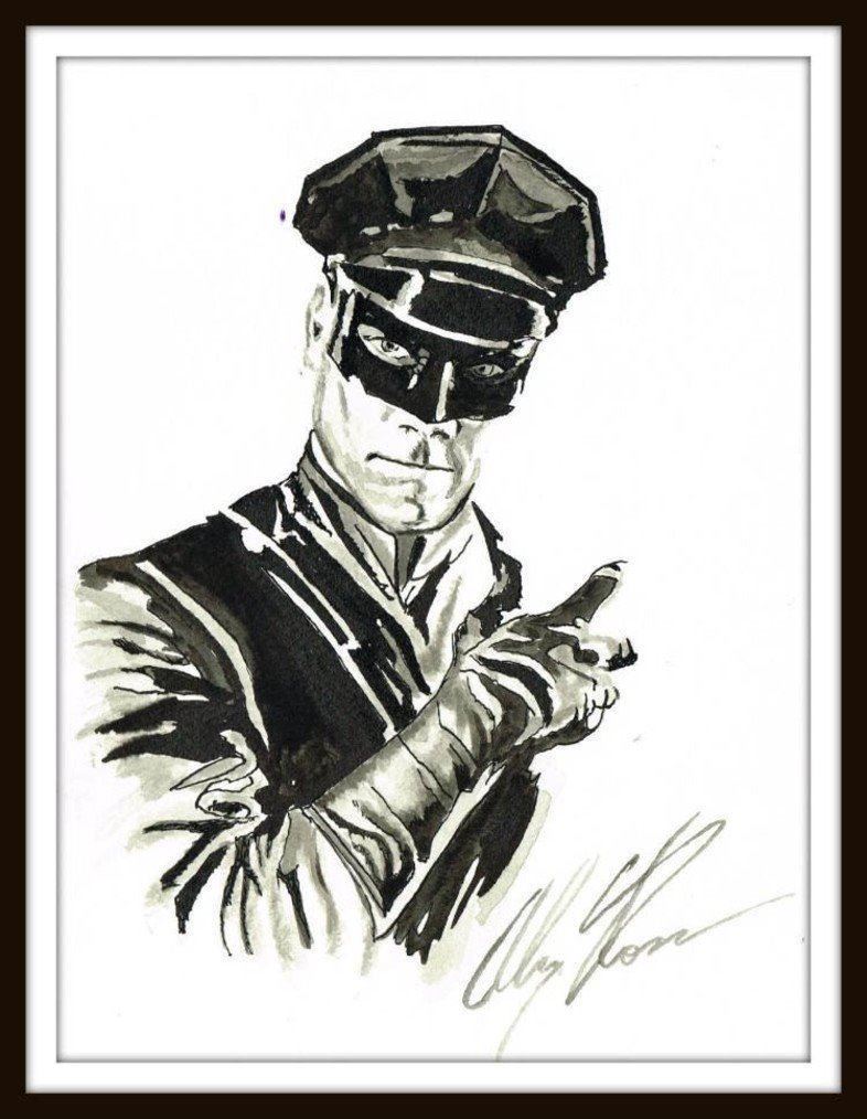 A drawing of Kato (Masks) by comic legend Alex Ross. Professionally mounted and framed in wood. Alex Ross was born in Portland, Oregon, and raised in Lubbock, Texas. In 1993, after graduating from the American Academy of Art, Alex collaborated with Marvel Comics editor Kurt Busiek to create Marvels, a graphic novel which examined the Marvel superheroes from the perspective of an ordinary man. The book's critical success demonstrated Alex's affection for the characters through both detail and believability. Many fans were astonished by Ross?uncannily realistic portrayals of Spider-Man, Captain America, The Fantastic Four, The X-Men, Silver Surfer, The Human Torch and others. Afterwards, Busiek, Ross and penciller Brent Anderson created Astro City, first published by Image Comics in 1995 and later published by Homage Comics. In 1996, Ross teamed-up with writer Mark Waid for the DC Comics mini-series Kingdom Come, which helped cement Ross' place as a comic book industry superstar. He followed it with Uncle Sam, a non-superhero work. In the late 1990s and early 2000s, Ross painted tabloid-sized comic books celebrating the 60th anniversaries of DC Comics?Superman, Batman, Wonder Woman and Captain Marvel, respectively, as well as two books featuring the all-star Justice League. He has also designed much DC merchandise, including posters, dinner plates and statues. In 2001, Ross gained acclaim for his work on special comic books benefiting the families of those killed in the September 11, 2001 attacks, including his portraits of paramedics, police and firefighters. In 2004, DC compiled the coffee table book Mythology: The DC Comics Art of Alex Ross, written and designed by Chip Kidd. His numerous awards include a 1997 Will Eisner Award and two nominations for Kingdom Come, a 1998 National Cartoonists Society Comic Book Award for Superman: Peace on Earth, and a nomination for the Comics Buyer's Guide Award for Favorite Colourist in 2000. Very good, apart from some smudges.