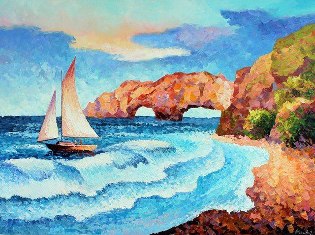 ALEXANDER ANTANENKA "SAILING BY THE COAST" ORIGINAL ACRYLIC ON CANVAS HAND SIGNED BY THE ARTIST. SIZE: 30" X 40", COMES WITH COA. THIS PIECE IS STRETCHED AND READY FOR FRAMING. DUE TO SIZE, ADDITIONAL SHIPPING CHARGES MAY APPLY. J5850
