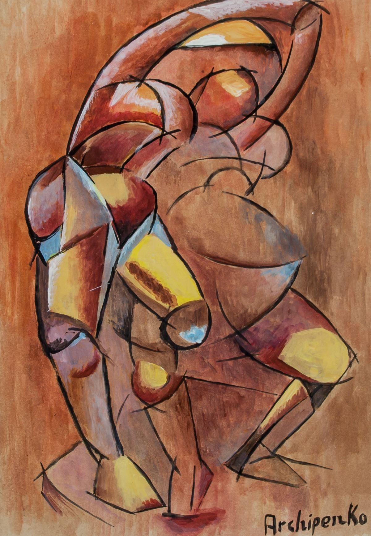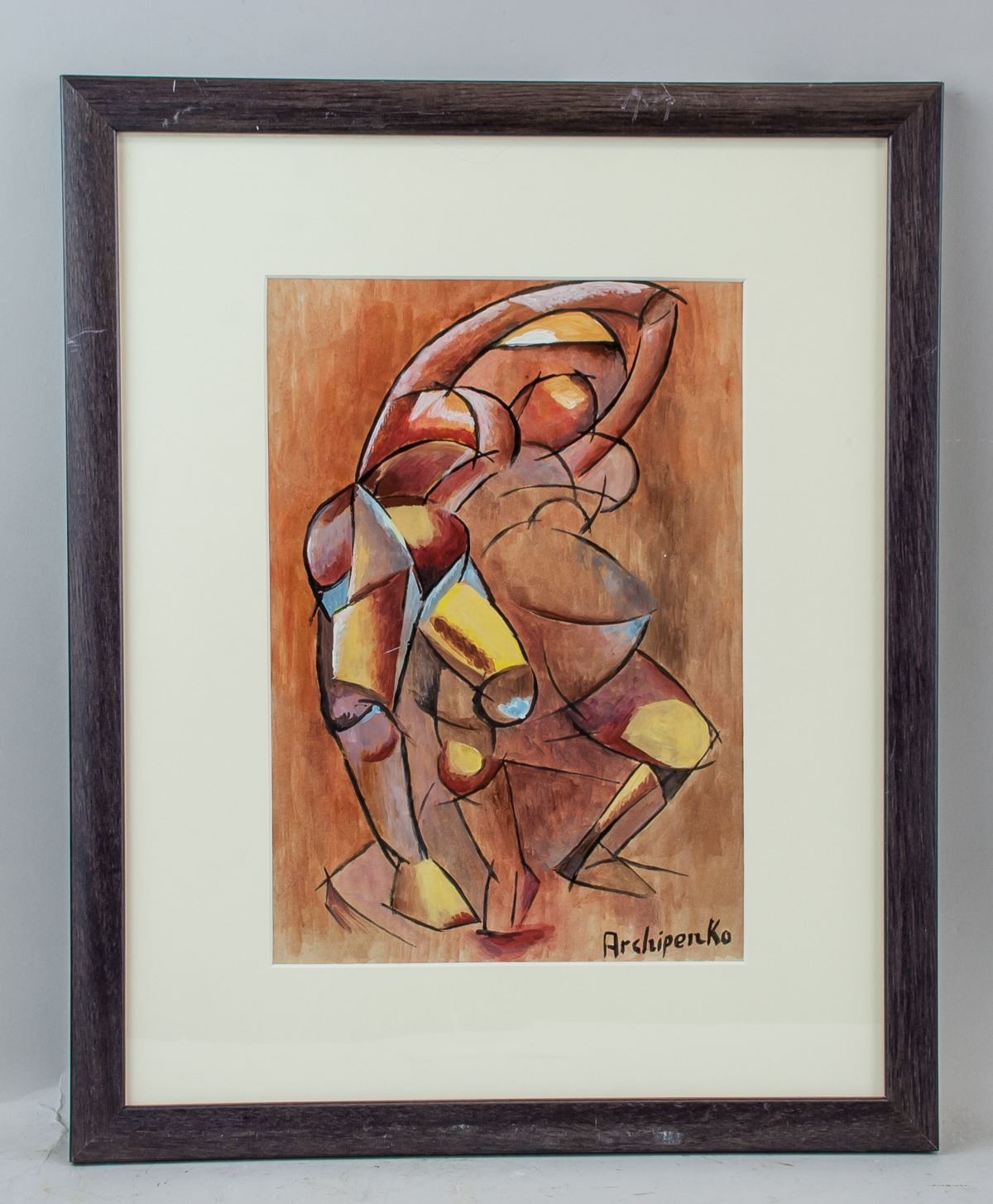 Mixed media on paper, framed. Featuring a cubist study of a dancing figure. Signed and attr. Alexander Archipenko (Ukrainian-American, 1887-1964) on the lower right corner. 28.5 x 20 cm (11.2 x 7.9 inches), frame: 44 x 36 cm (17.3 x 14.2 inches). Alexander Archipenko was an American-Ukrainian artist. His best-known works are his small-scale sculptures—notable as among the first to apply Cubism to three-dimensional form—in which he utilized alternating faceted planes and organic curves to depict an inventive interpretation of the human figure. Having achieved considerable success throughout his life, Archipenko was included in the notorious 1913 Armory Show in New York, participated in the 12th Venice Biennale, and founded art schools in both Paris and Berlin. Today, his works can be found in the collections of dozens of important institutions, such as the Tel Aviv Museum of Art in Israel, the Walker Art Center in Minneapolis, and the Tate Modern in London. Archipenko is also remembered for his massive stature of King Solomon, permanently installed on the University of Pennsylvania campus. Born on May 30, 1887 in Kiev, Ukraine, Archipenko died on February 25, 1964 in New York, NY. PROVENANCE: Southern Ontario estate