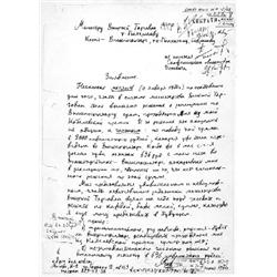 <b>436. ALEXANDER I. SOLZHENITSYN</b> (b. 1918) Nobel Prize wining Russian author of <i>The Gulag Archipelago</i>, <i>The Cancer Ward </i>and other books detailing the Russian penal system which led to his exile from Russia. Rare, fine content A.L.S. 1p. 4to., Moscow, June 7, 1971 to the Soviet Foreign Trade Minister who has stamped the letter "<i>SECRET</i>". In 1970, Solzhenitsyn was awarded the Nobel Prize for Literature, along with the sum of approx. $250,000. This sum was paid out in U.S. dollars in installments, and as a means on intimidation, the Soviets would require the author to obtain a permit to collect each such installment. In this letter, Solzhenitsyn asks the trade minister for a 696 ruble payment due to him, and further requests that the minister issue a single, blanket order allowing the author to collect his prize winnings more easily and on a regular basis. A few notations and stamped dockets, one only slightly affecting signature, file holes at left, else very good.<b> $800-1,200</b>