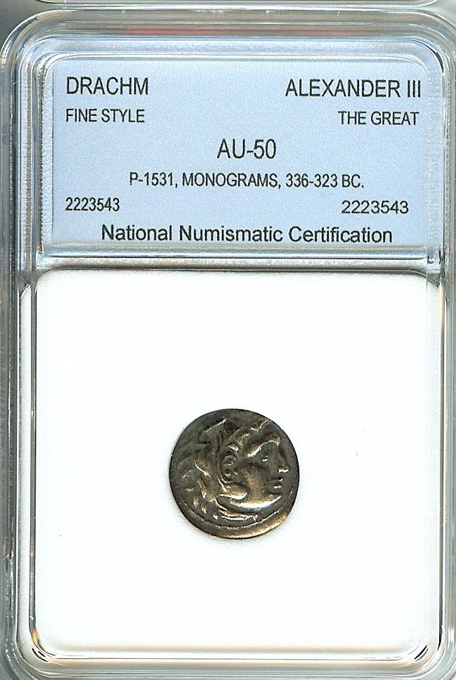 ALEXANDER III THE GREAT 336-323 BC. DRACHM -MONOGRAMS- NNC AU50 FINE STYLE