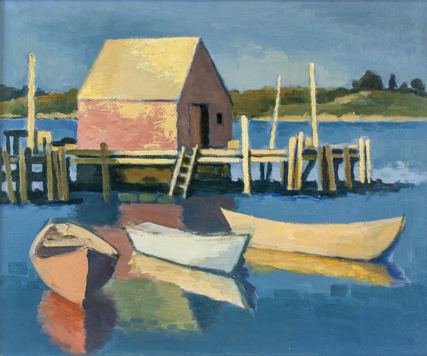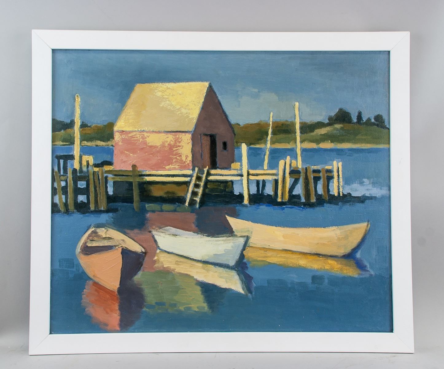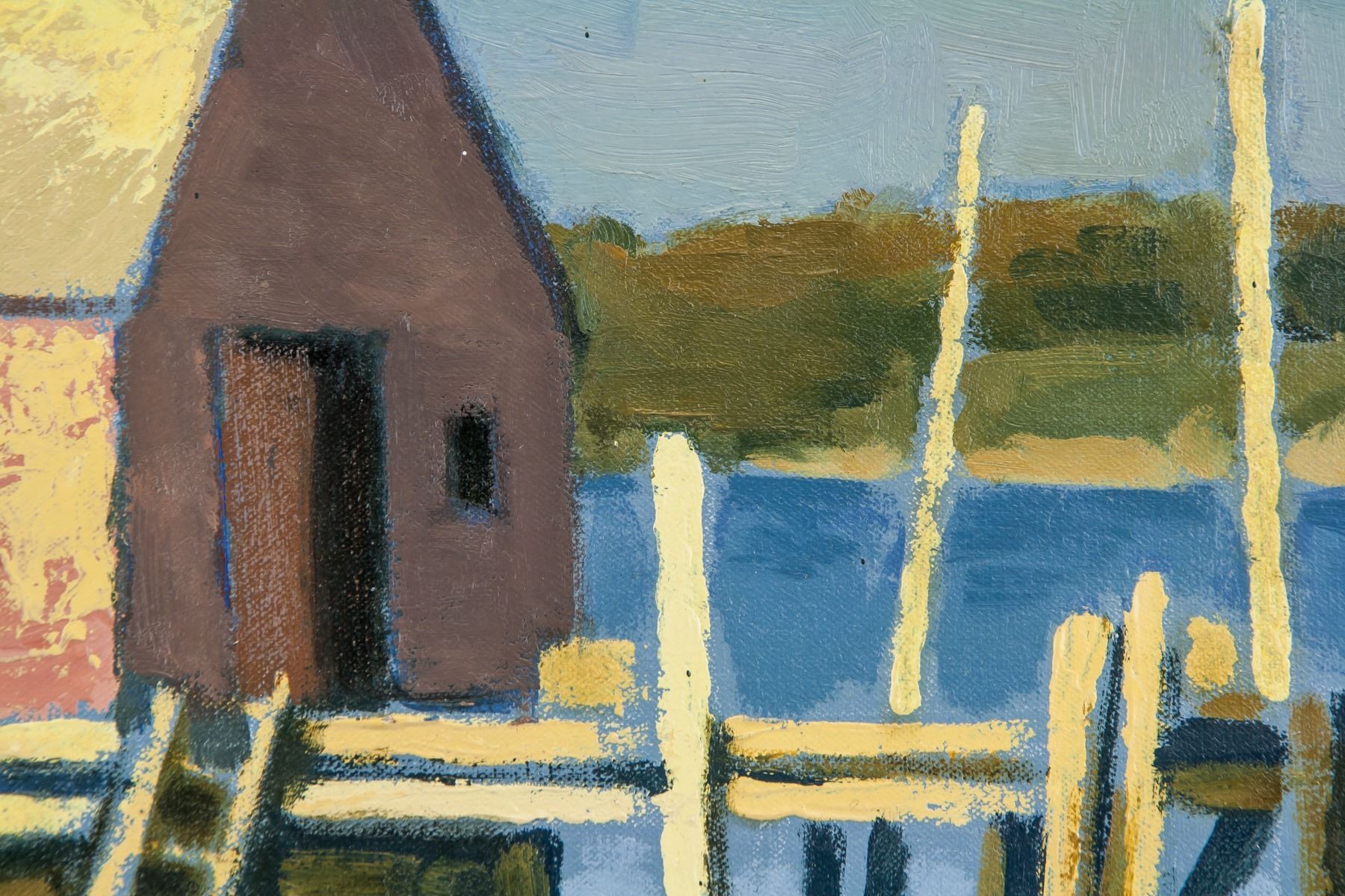Oil on canvas. Featuring a landscape scene of Nova Scotia harborfront. Unsigned, Alexander Korenfeld (Russian-Canadian, born 1944). 51 x 61 cm (20 x 24 inches). Alex Korenfeld is a painter who was born in 1944. Several works by the artist have been sold at auction, including 'MARIO TOZZI' sold at Waddington's ''Off the Wall' Art Online Auction' in 2017. PROVENANCE: from the artist